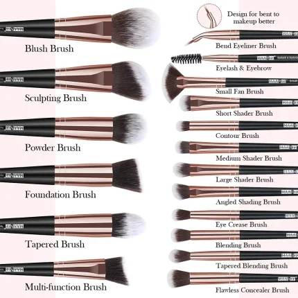 MAANGE 18Pcs Face & Eye Professional Makeup Brushes Set – Rose Gold
