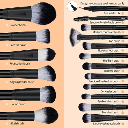 MAANGE 18Pcs Face & Eye Professional Makeup Brushes Set – Black