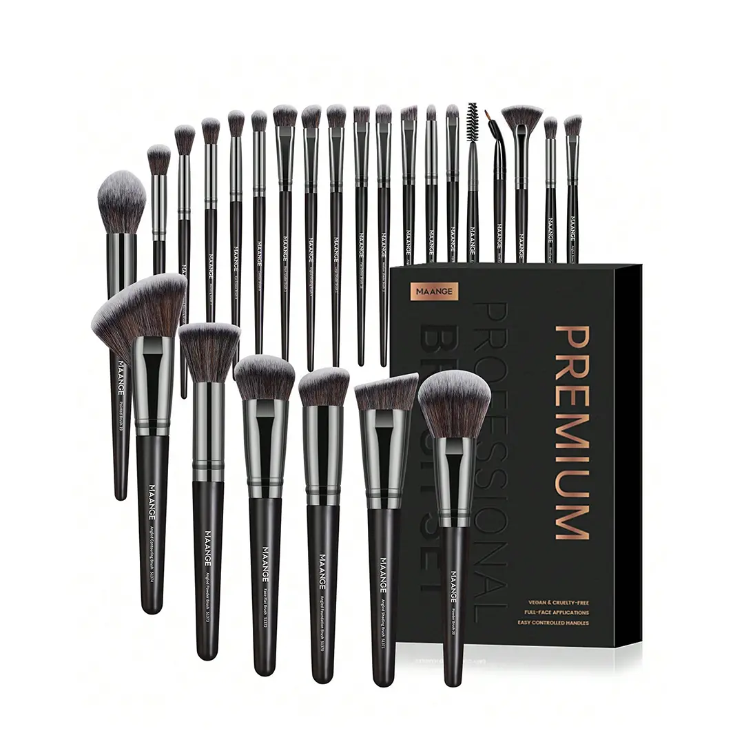 MAANGE 25Pcs Professional Makeup Brushes Set with Box – Black