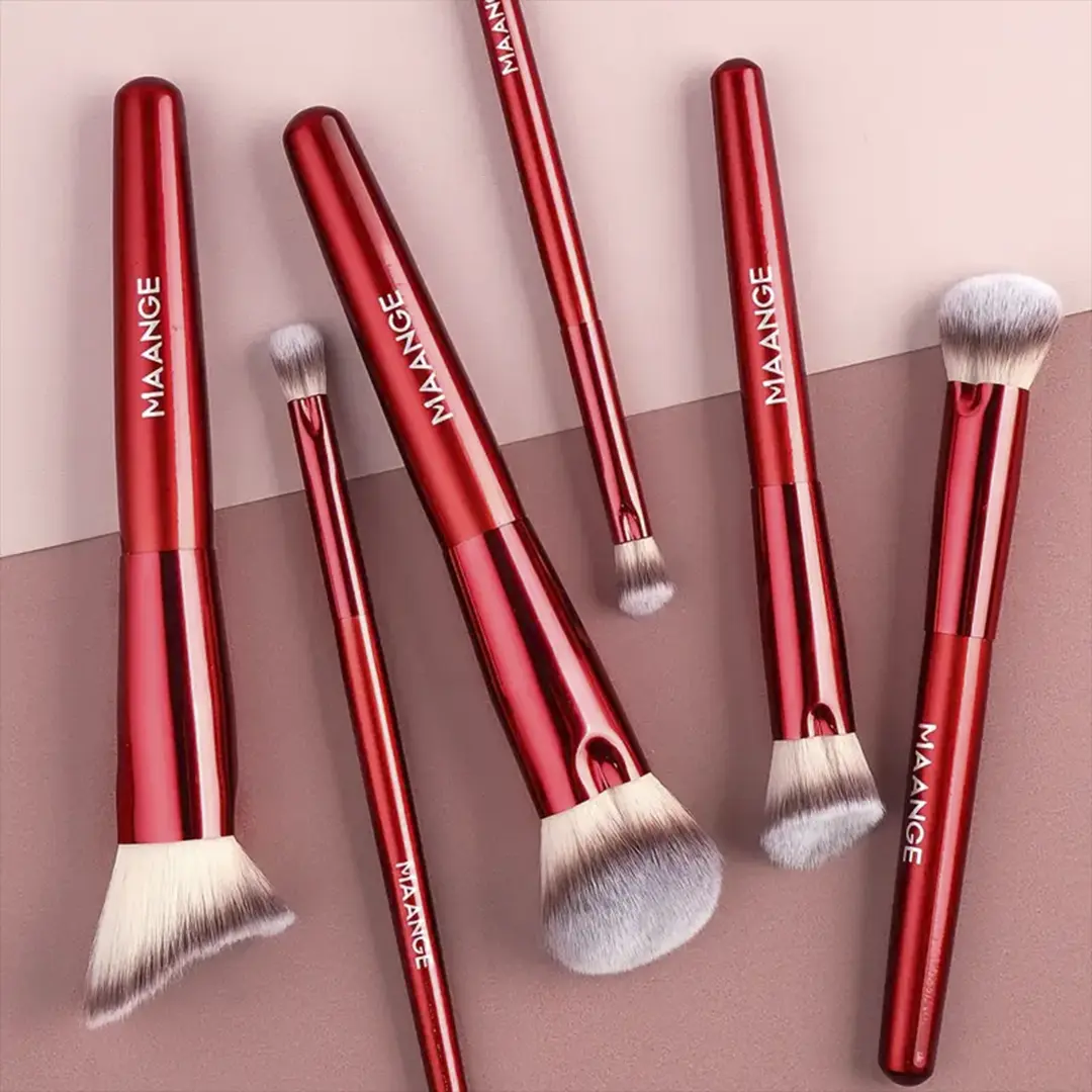 MAANGE 6Pcs Professional Face & Eye Makeup Brush Set – Red Edition
