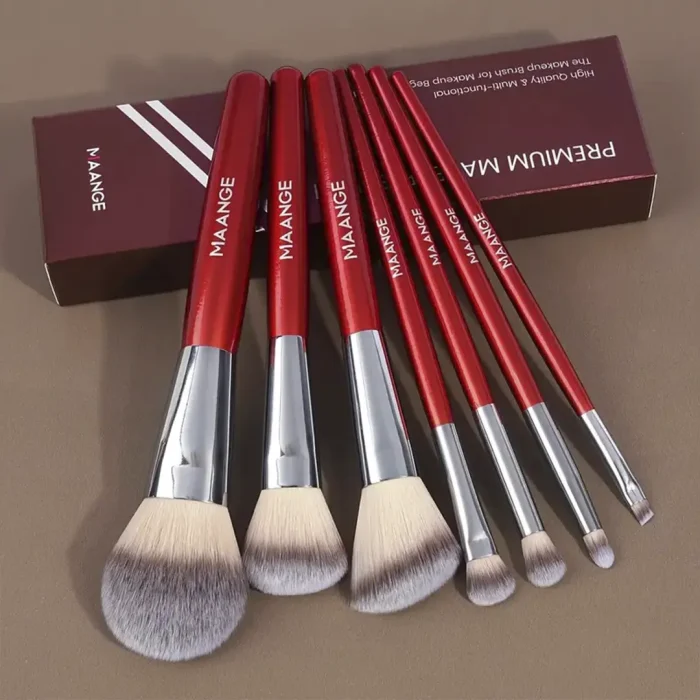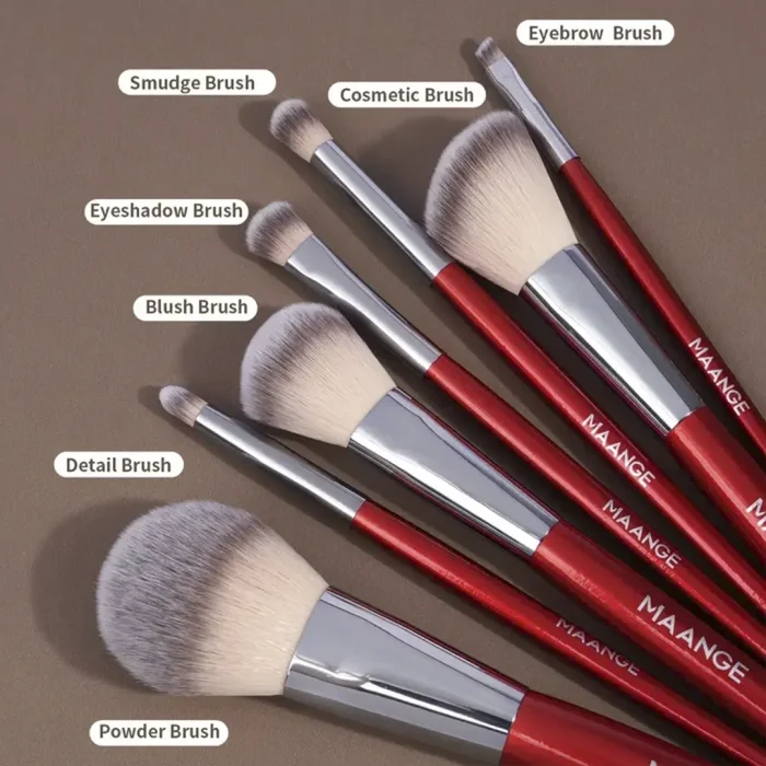 MAANGE 7Pcs Premium Face & Eye Brush Set – Red